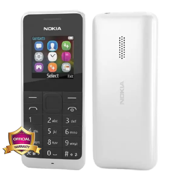 Nokia 105 has a QQVGA type display, 16.6% screen-to-body ratio, 120 x 160 pixels display resolution, call records, 3.5 mm audio headphone jack, 14.4mm thickness, 119 x 49.2 x 14.4 mm body dimension.