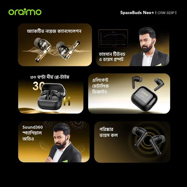 Bangladesh. You can purchase the oraimo SpaceBuds Neo+ ANC Spatial Audio True Wireless Earbuds in Bangladesh at the best price from our website Bigraz.com.bd.