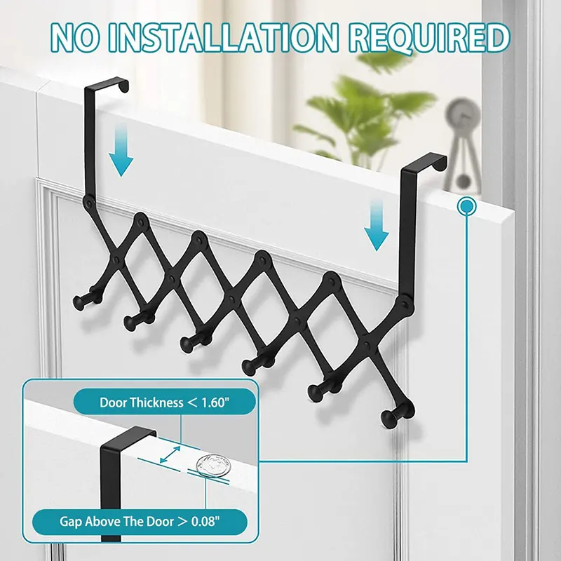 Portable Door Hanger – 6 Hooks Stainless Steel Foldable Door Clips – Over the Door Stainless Steel Hook