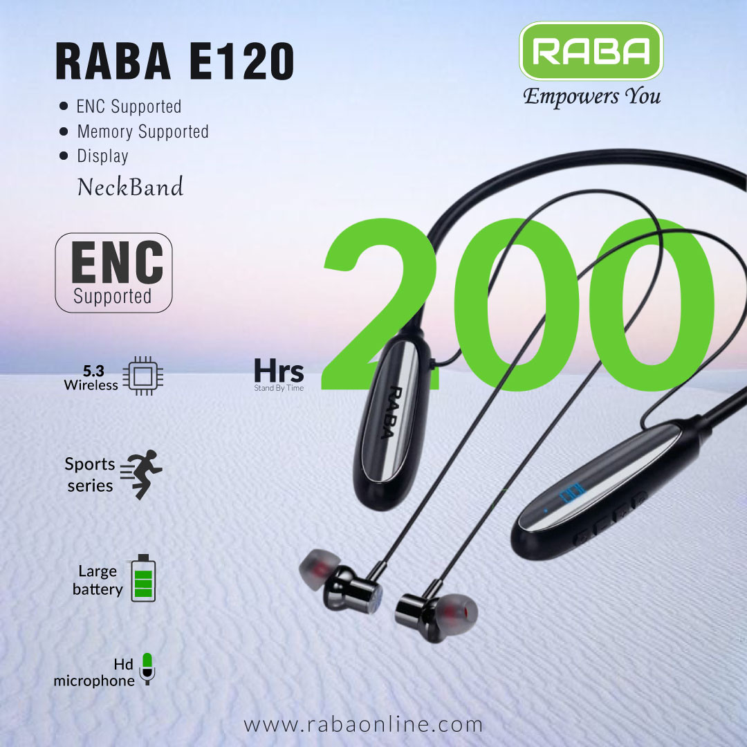 The RABA E120 200Hours ENC Display NeckBand Memory Supported are now