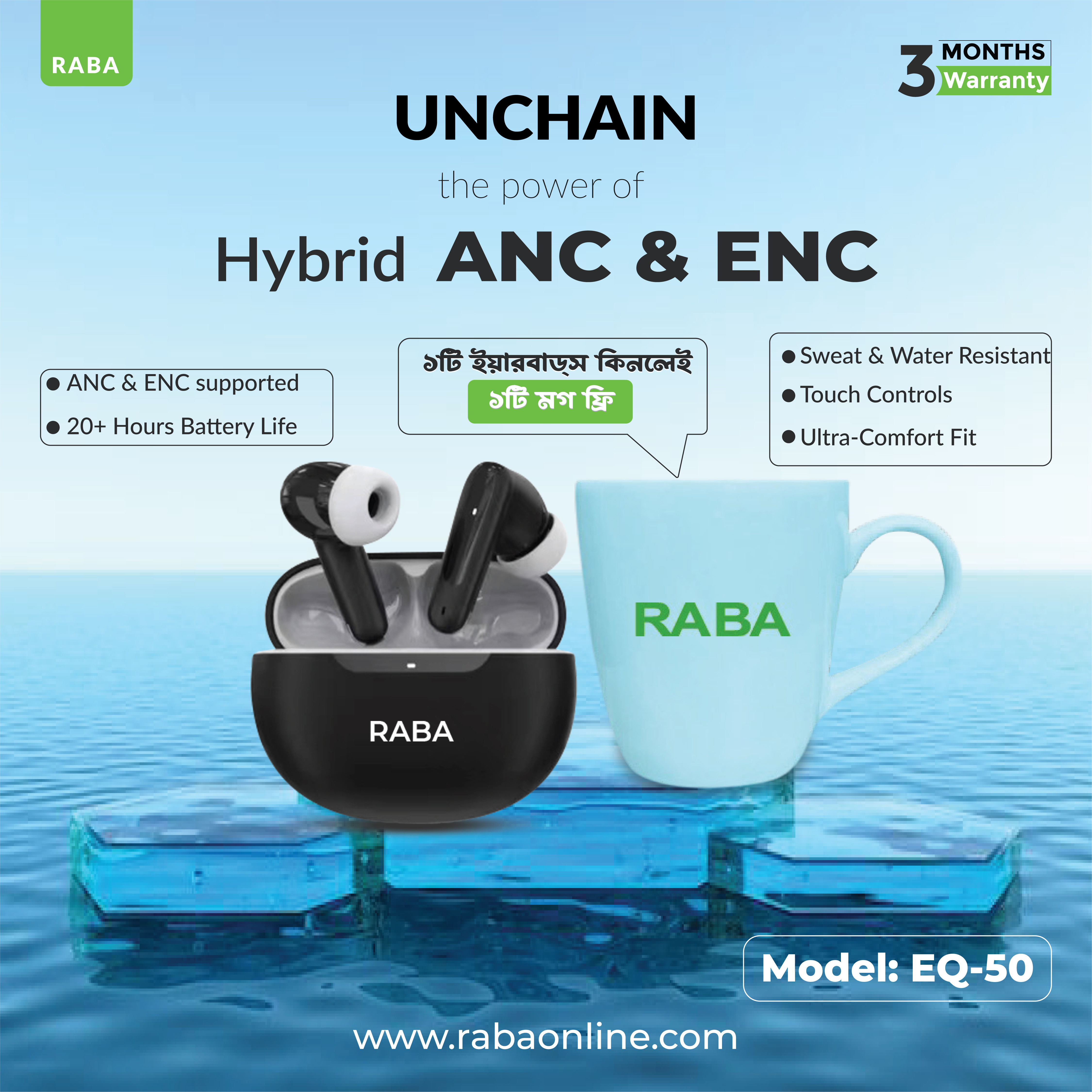 The latest price of RABA EQ50 Wireless ANC & ENC Earbuds is ৳990 in Bangladesh. You can purchase the RABA EQ50 Wireless ANC & ENC Earbuds in Bangladesh at the best price from our website Bigraz.com.bd.