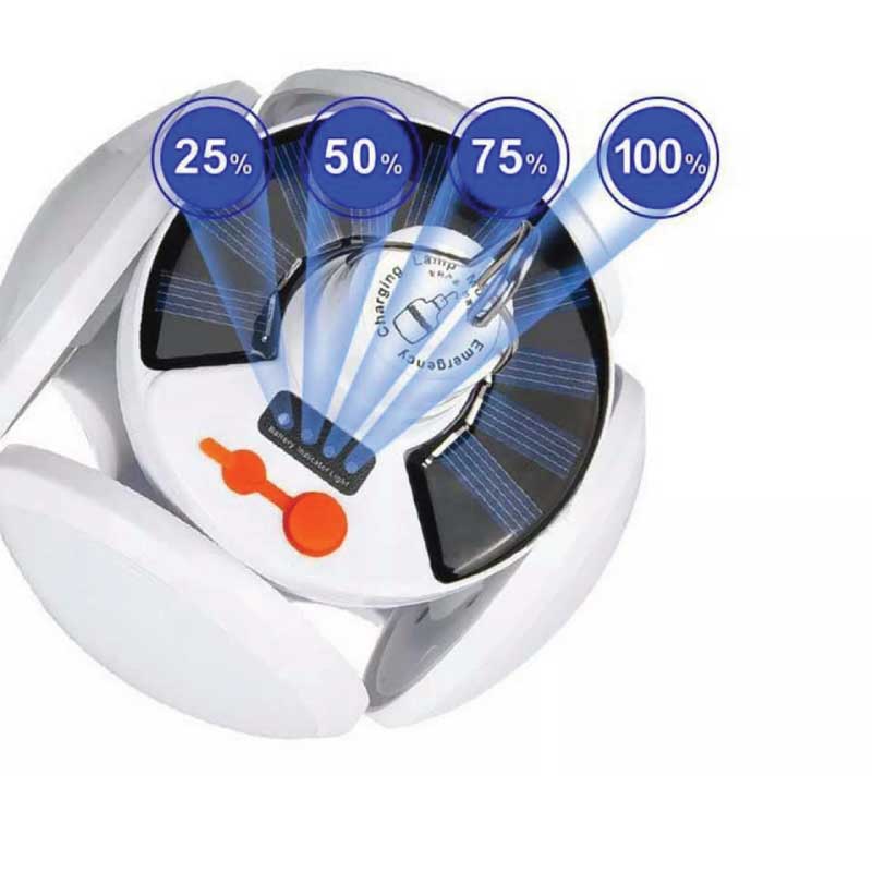 Built-in two 18650 lithium batteries, one 1200 mA, a total of 2400 mA. The USB camp lantern is rechargeable and doesn’t need to exchange batteries.The top of the lamp is equipped with a solar charging board which can be recharged during the day.