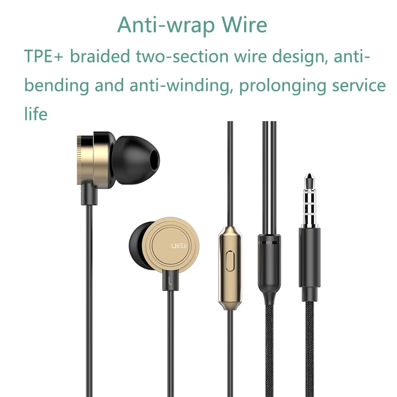 The In-ear design UiiSii HM13 with luxury metal material shell well protects earphones and looks elegant and high-end, comfortable to wear, not easy to fall off.10mm Titanium film moving coil horn, strong bass, clear treble. Built-in integrated hands-free mic ensures high-sensitivity and clear phone calls.